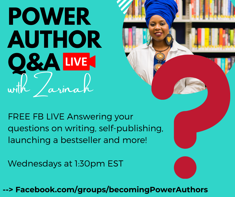 Click the link to join Zarinah LIVE today at 1:30pm EST in our Facebook group: www.facebook.com/groups/ becomingpowerauthors